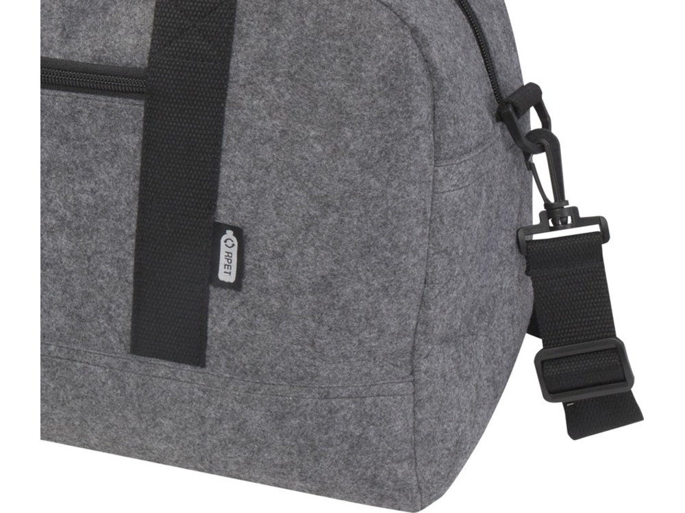 Многоцелевая спортивная сумка из мягкого и прочного высококачественного переработанного фетра, сертифицированного согласно GRS. Имеет большое основное отделение, передний карман на молнии, боковой карман, съемные и регулируемые плечевые ремни и удобные хлопковые ручки для различных способов переноски. Сумка оснащена небольшими ножками/шпильками в нижней части, которые удерживают ее немного приподнятой над землей, помогая предотвратить попадание грязи или влаги на сумку.