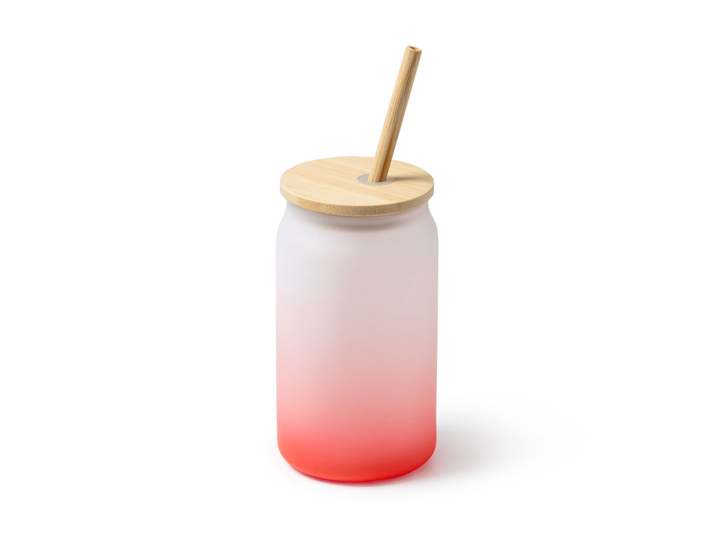 Стакан из боросиликатного стекла с цветовым градиентом. Бамбуковая крышка и соломинка. Емкость 350 мл.
