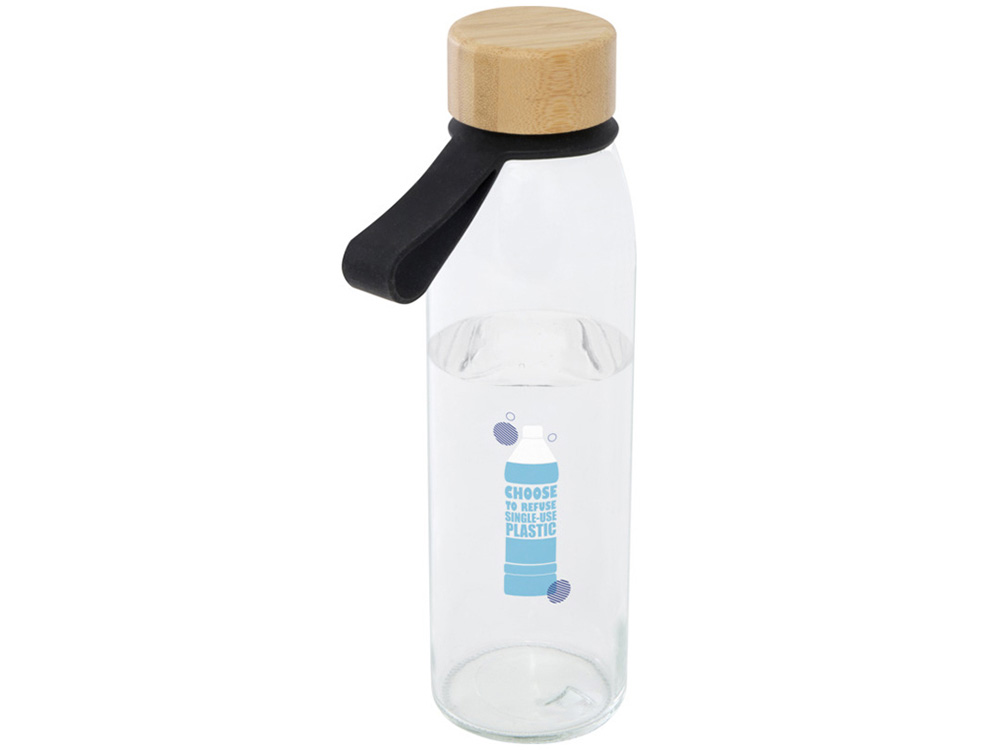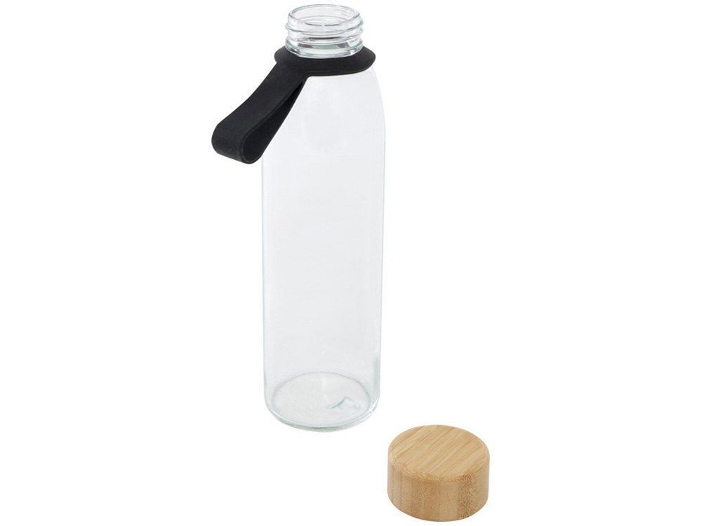 Одностенная стеклянная бутылка для воды с завинчивающейся бамбуковой крышкой, произведенной из более устойчивых и социально ответственных источников. В комплект входит удобный силиконовый ремешок для удобной переноски. Поставляется в подарочной коробке из переработанного картона. Объем: 500 мл. Стекло, FSC certified bamboo. упаковка FSC Mix Credit P5.1 CU-COC-877277. FSC 100% N5 CU-COC-877277.