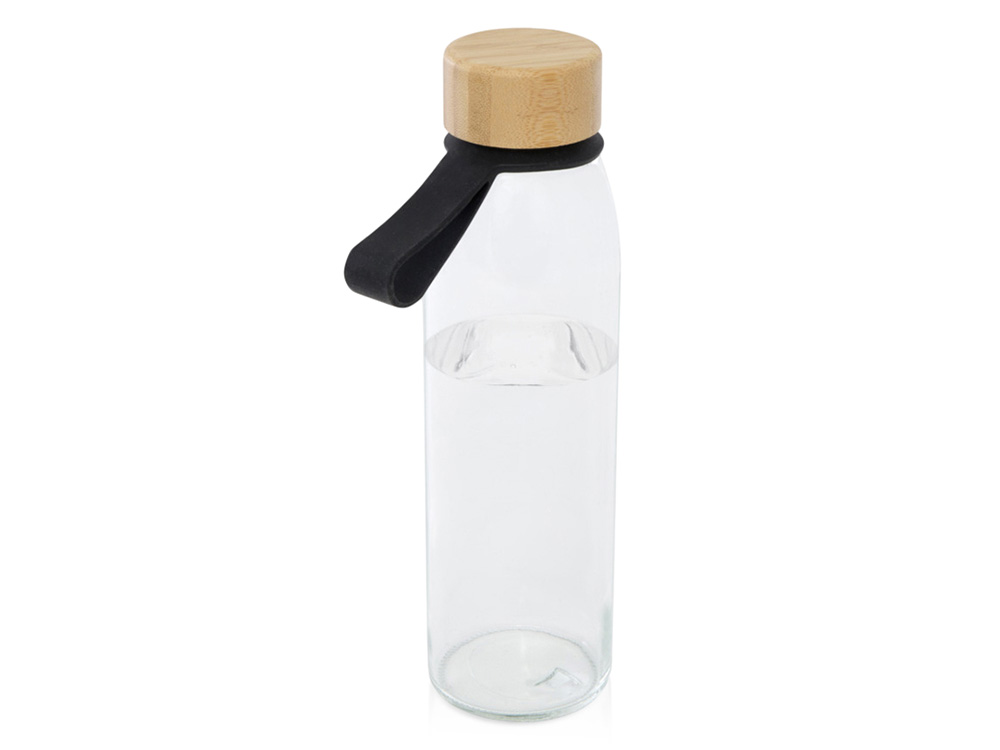 Стеклянная бутылка для воды Porto объемом 500 мл с силиконовой ручкой и бамбуковой крышкой - сплошной черный купить оптом и в розницу с нанесением логотипа в Воронеже