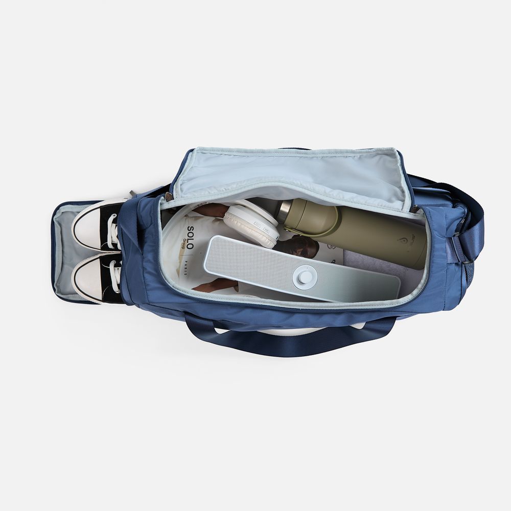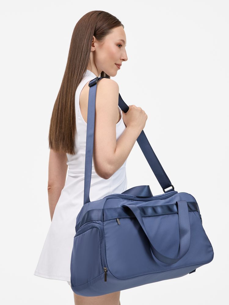 Сумка отличается продуманным дизайном: отделение для обуви с боковым входом на молнии предотвращает загрязнение остальных вещей, нижняя ручка упрощает извлечение сумки с багажной полки, а передний карман обеспечивает быстрый доступ к смартфону, ключам и проездным.