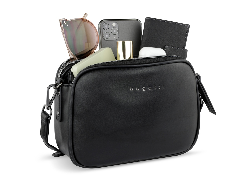Сумка кросс-боди женская BUGATTI Almata, чёрная, полиуретан, 21,5х6х15 см