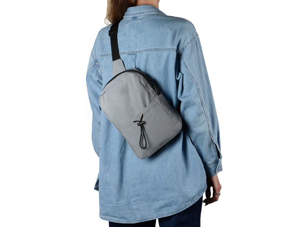 Светоотражающая сумка на одно плечо обеспечит дополнительную безопасность в темное время суток. Внутренний карман на молнии предназначен для хранения ценных вещей. Задняя часть сумки, прилегающая к телу, снабжена дышащей сеткой. Ремень 120 см регулируется по длине.Благодаря возможности менять положение ремня, сумку можно носить слева и справа.