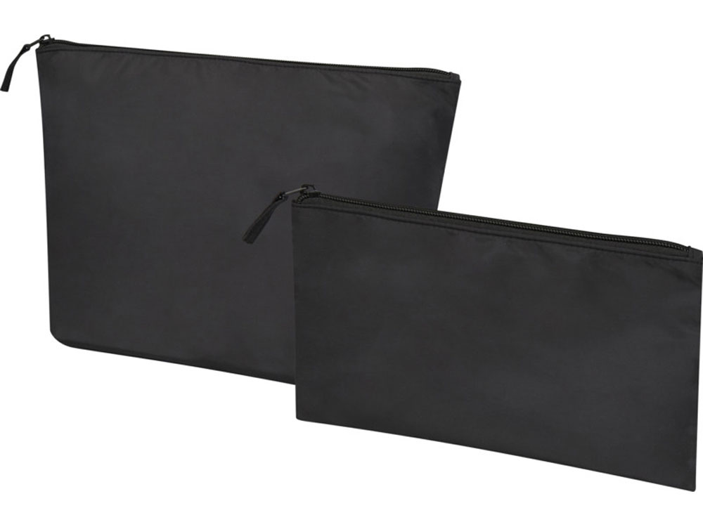 Набор из 2 косметичек, изготовленных из переработанного полиэстера. Полиэстер имеет сертификат GRS. В комплект входят одна большая и одна маленькая косметички. Легкие, прочные и удобние для хранения косметики или электроники. Большая сумка имеет размер 32 х 21 см, а маленькая 23 х 13 см.