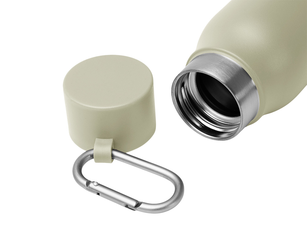 Компактный термос с двойными стенками из переработанной нержавеющей стали марки 304. Матовая поверхность с покрытием Powder. Объем: 550 мл. Комплектация: Удобный карабин в комплекте (внимание: декоративный, не для альпинизма). Уход: Только ручная мойка (не подходит для посудомоечной машины). Упаковка: Экологичная коробка из вторсырья.