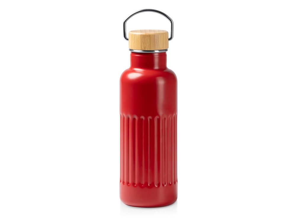 Термобутылка Нобук из переработанной нержавеющей стали, с бамбуковой крышкой, красный