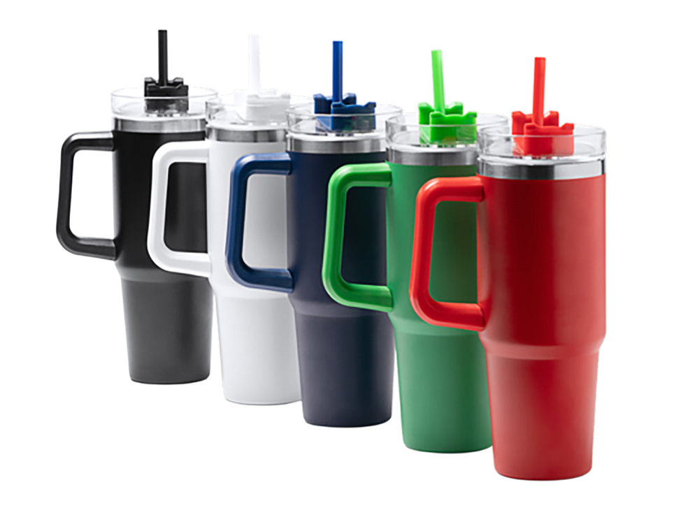 Двухстеночная термокружка из переработанной нержавеющей стали 304. Крышка с трубочкой и винтовой системой закрытия. Объём: 850 мл. Поставляется в дизайнерской коробке.