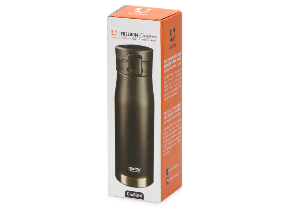 Матовый черный термос с блестящей отделкой дна. Герметичная крышка с откидным механизмом, кнопкой открывания и блокировкой от случайного нажатия защищают термос от проливания, благодаря чему содержимое вашей сумки всегда будет в безопасности с Liberty Canteen. Широкое горлышко позволяет удобно насыпать в термос лед и мыть внутреннюю колбу. - Герметичность: крышка оснащена блокировкой от случайного нажатия - Двойные стенки с вакуумной изоляцией между ними - Пищевая нержавеющая сталь 18/8 с содержанием никеля и хрома, стойкая к коррозии - Сохраняет температуру холодных напитков до 24 часов, горячих – до 12 часов - Поставляется в индивидуальной коробке с цветной печатью или подарочном картонном тубусе