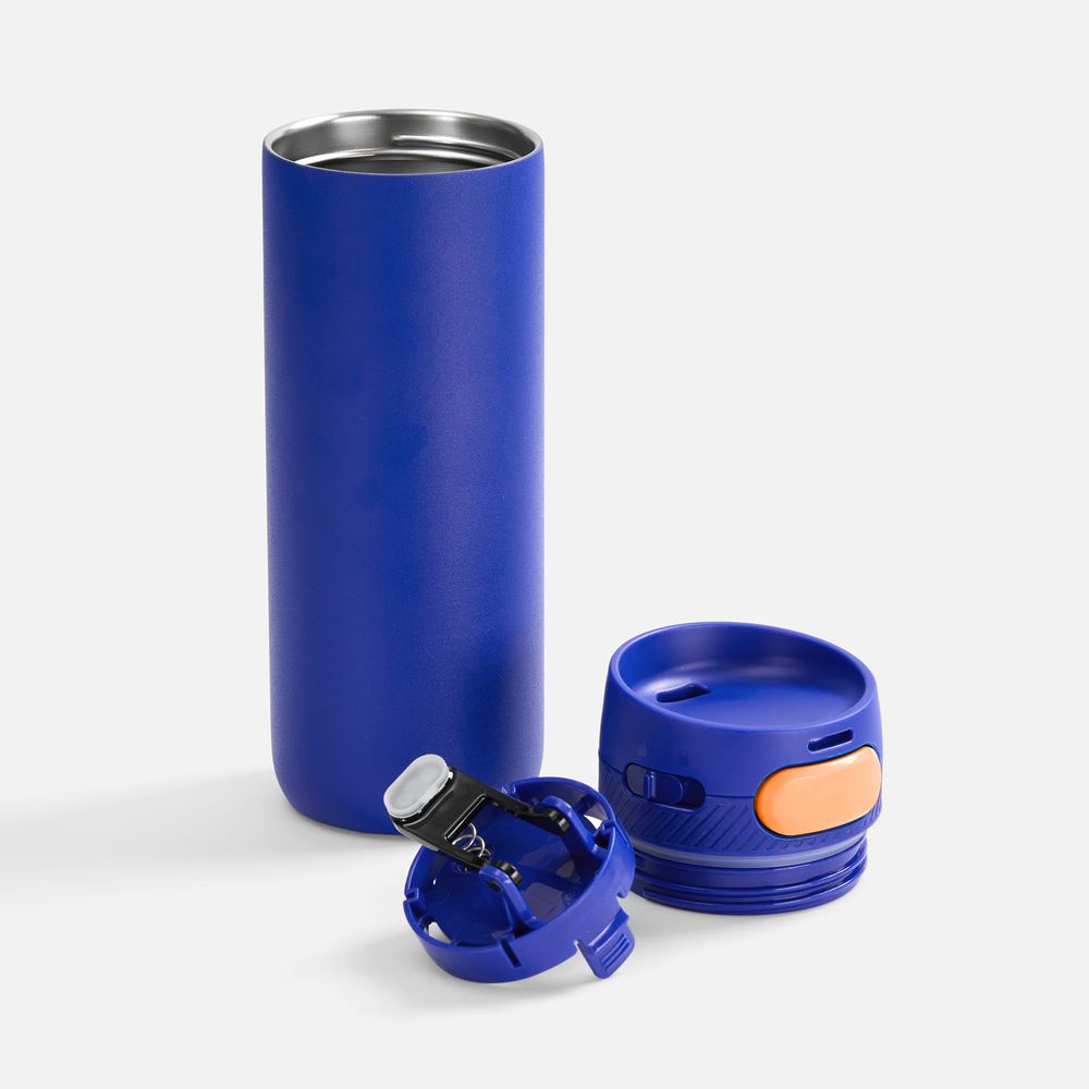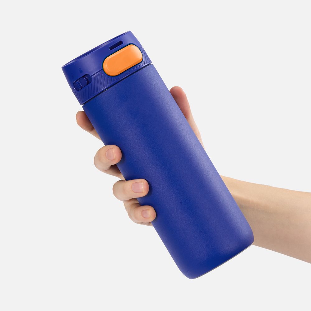 Термостакан X1 с цветной кнопкой, синий с оранжевым
