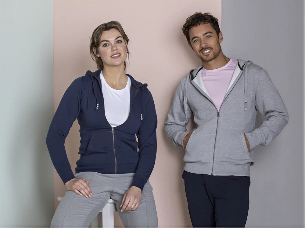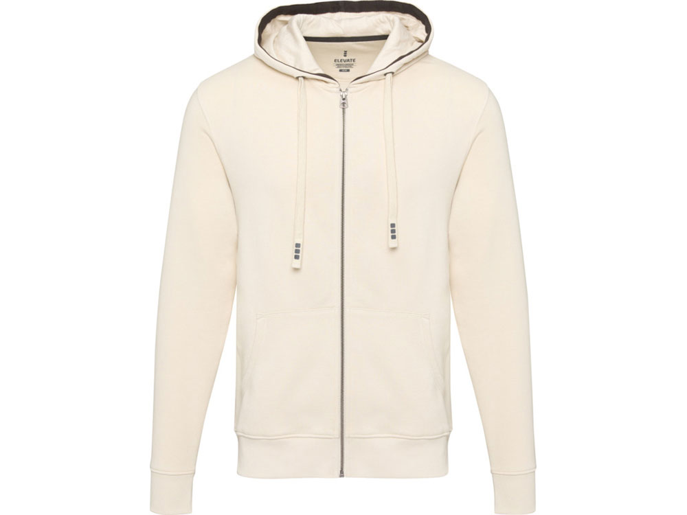 Толстовка Арора с капюшоном и застежкой-молнией на всю длину. Стандартный покрой. Резинка 2х2 на боковых вставках, поясе и манжетах. Карман кенгуру. Мужская и женская модели с завязками на капюшоне. Подкладка внутри капюшона и на спинке под горловиной в форме полумесяце. Атласная лента для укрепления внутри горловины. Принт лого сзади в тон изделия. Серебристые люверсы с лого. Трикотаж: 82% хлопок, 10% вискоза и 8% полиэстер, чесаная внутренняя сторона. 300 г/м².