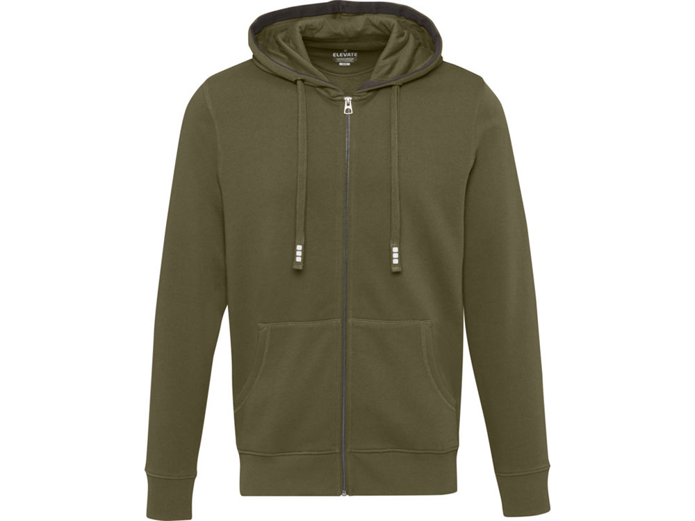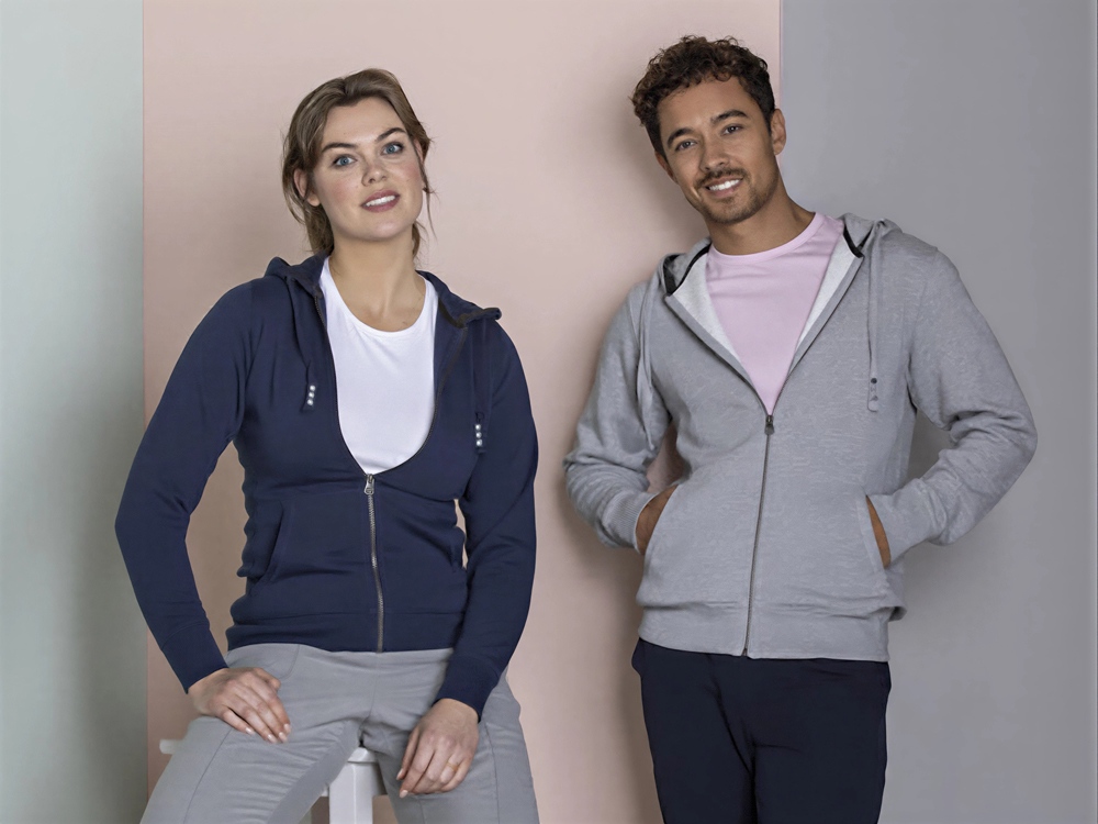Толстовка Арора с капюшоном и застежкой-молнией на всю длину. Стандартный покрой. Резинка 2х2 на боковых вставках, поясе и манжетах. Карман кенгуру. Мужская и женская модели с завязками на капюшоне. Подкладка внутри капюшона и на спинке под горловиной в форме полумесяце. Атласная лента для укрепления внутри горловины. Принт лого сзади в тон изделия. Серебристые люверсы с лого. Трикотаж: 82% хлопок, 10% вискоза и 8% полиэстер, чесаная внутренняя сторона. 300 г/м².