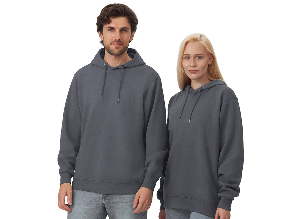 Толстовка с капюшоном из мягкого флиса из смеси хлопка и полиэстера. Модель комфортной и актуальной посадки оверсайз отлично подходит для обычной жизни и в качестве промо мерча. - оверсайз посадка - удобный капюшон на подкладке -мягкое и уютное полотно из смеси хлопка и полиэстеры - Низ и рукава обработаны манжетами из риба 2х2 и дополнительно отстрочены для укрепления - увеличенная зона для нанесения из-за отсутствия кармана