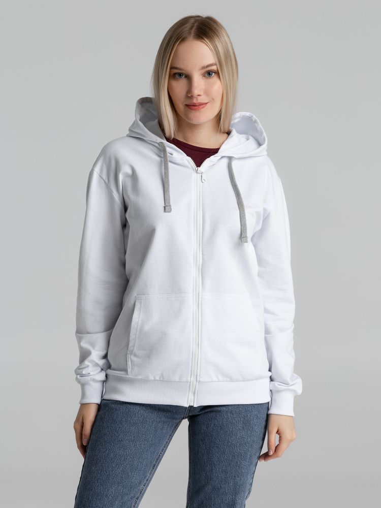 Толстовка на молнии с капюшоном Unit Siverga, белая купить оптом и в розницу с нанесением логотипа в Воронеже