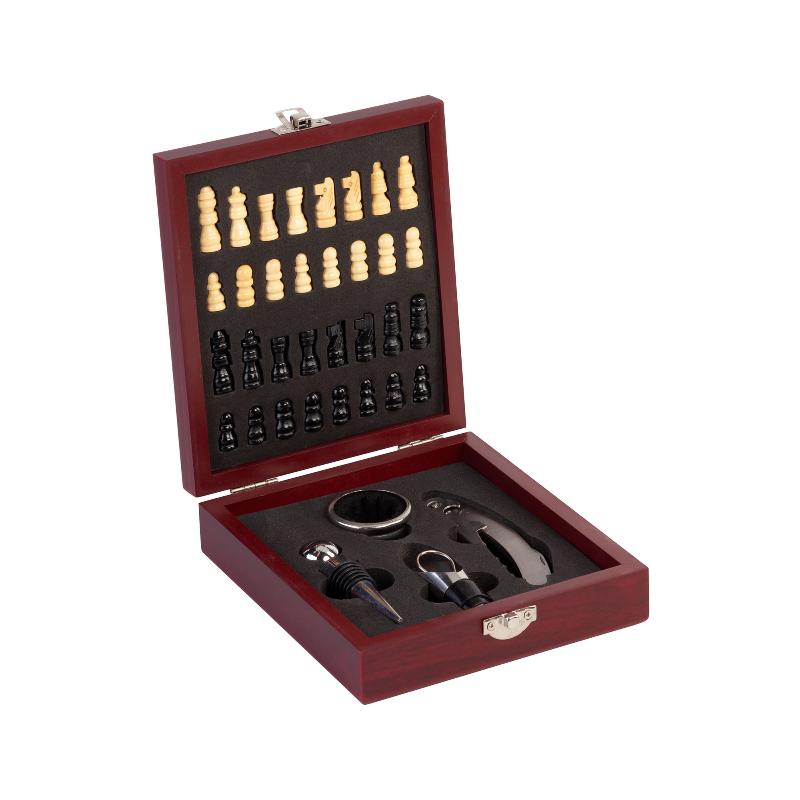 • С набором из винных аксессуаров, в котором идут шахматы - вы сможете разнообразить свой досуг, приятно провести время с друзьям