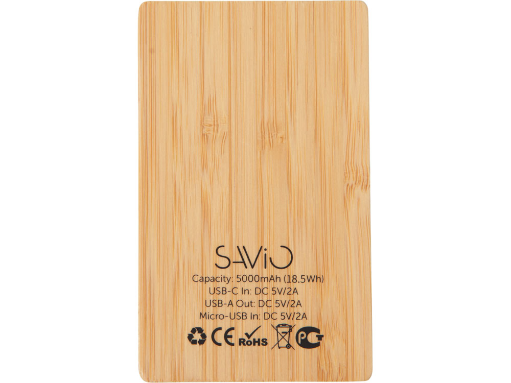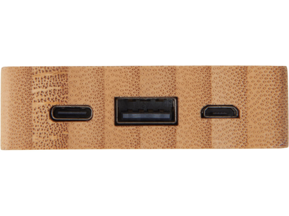 Компактный и стильный внешний аккумулятор ёмкостью 5 000 мАч — идеальный спутник для повседневных дел и коротких поездок. Его корпус сочетает в себе натуральный бамбук и переработанный ABS-пластик, что делает устройство не только более экологичным, но и визуально премиальным. Особый шарм ему придаёт встроенная панель с белой подсветкой с возможностью нанесения логотипа — ваш бренд или инициалы мягко засветятся в темноте, привлекая внимание и подчеркивая индивидуальность. Это не просто power bank — это экосознательный аксессуар, который заряжает ваши гаджеты и вдохновляет окружающих. - Компактный — 5 000 мАч в стильном корпусе для зарядки смартфона в дороге - Экологичный материал — натуральный бамбук + переработанный ABS-пластик - Логотип с подсветкой — ваш бренд мягко светится в темноте - Идеальный подарок — для клиентов, партнёров или сотрудников, кто ценит стиль и экологию