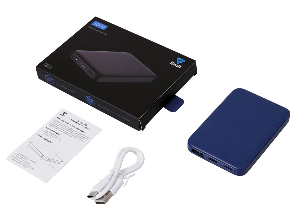 Внешний аккумулятор Simp, 5000 мАч, темно-синий купить оптом и в розницу с нанесением логотипа в Воронеже