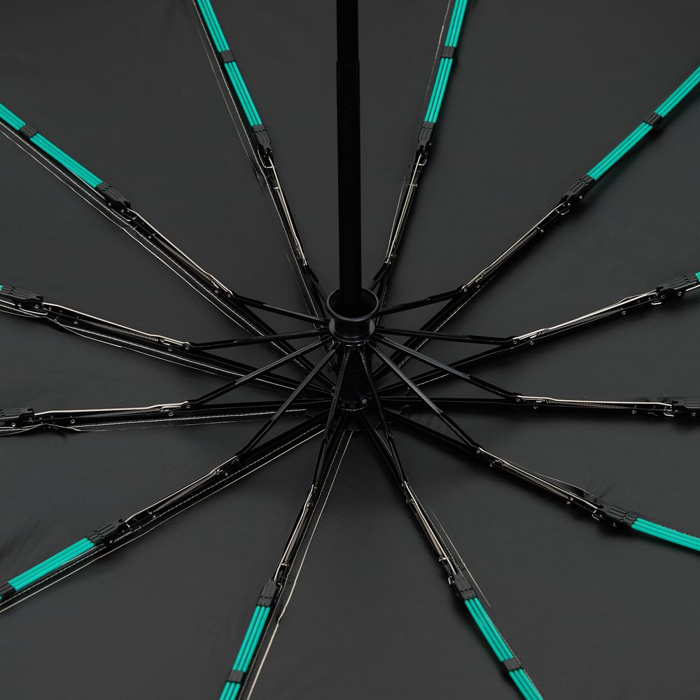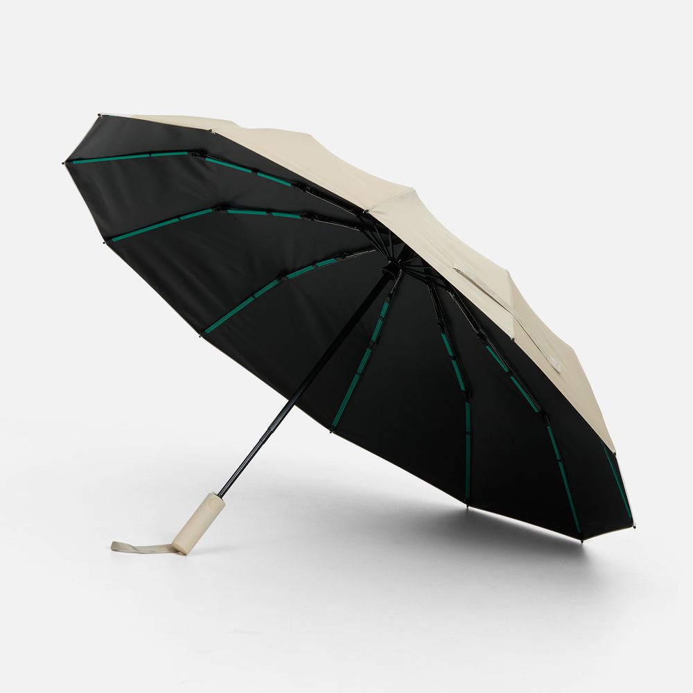 Зонт Ribstar отвечает абсолютной устойчивостью на любую непогоду. 12 усиленных тройных спиц — это не просто каркас, а целая инженерная система, которая противостоит шквальному ветру. УФ-покрытие на внутренней стороне купола позволяет с пользой задействовать зонт не только во время дождя, но и под палящим солнцем.